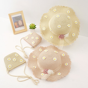 亲子夏新款系带蝴蝶结儿童草帽日系遮阳太阳帽包包套装...