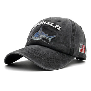 水洗男女士鲨鱼棒球帽鸭舌帽遮阳帽子速卖通wish亚...