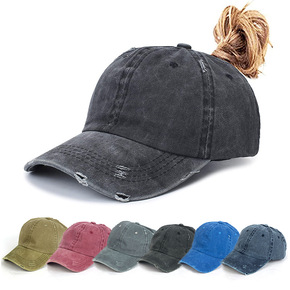 欧美春夏水洗破洞棒球帽女简约鸭舌帽弯檐户外遮阳帽马...
