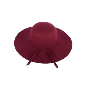 秋冬季女士大檐毛毡仿羊毛帽子外出保暖平沿蝴蝶结欧美...