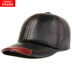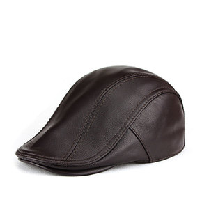 厂家羊皮贝雷帽薄款鸭舌帽男中老年前进帽真皮帽子女秋...