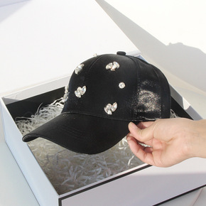 原创!黑色缎面丝光棒球帽女水钻轻奢名媛鸭舌帽街头潮...