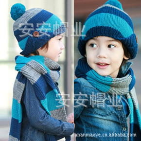 冬天儿童毛线帽子围巾两件套装加绒宝宝秋季男童潮女孩...