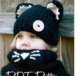欧美儿童帽子围巾围脖两件套秋冬款 婴儿手工猫咪帽子...