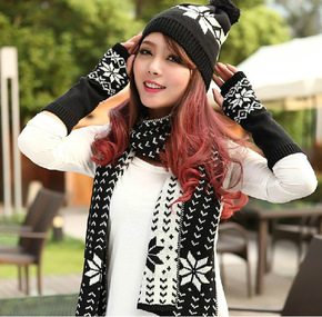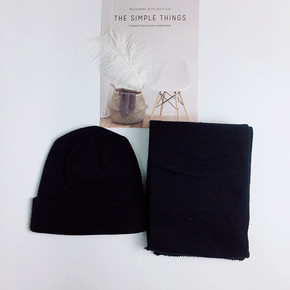 2019秋冬新款毛线帽子黑色围脖两件套 套头围脖两...