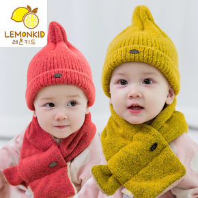 韩国儿童糖果色帽子围脖套装秋冬两件套婴儿冬款男女童...