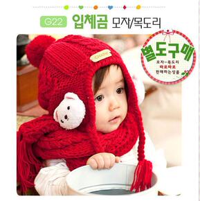 帽子围巾两件套 小熊儿童毛线帽子 棉质里布保暖防寒...