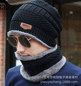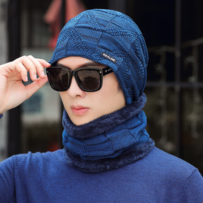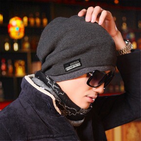 2019新款加绒套帽子男针织帽围脖两件套护耳保暖冬...