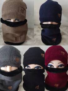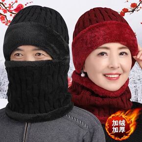 秋冬保暖中老年针织帽子 防风围脖围巾两件套加绒加厚...