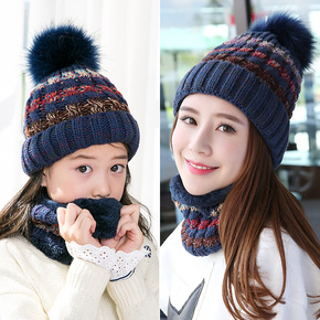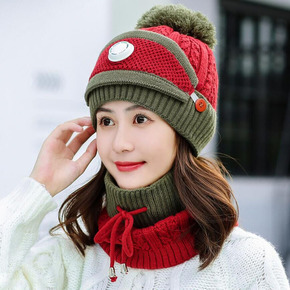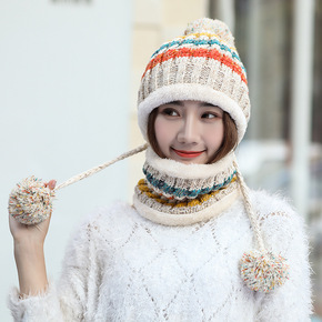 冬季帽子围巾两件套女加绒帽 保暖毛球帽甜美可爱针织...