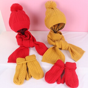 冬季新款儿童加厚保暖针织帽子围巾手套三件套宝宝加绒...
