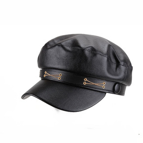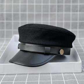 小头围秋冬毛呢皮沿平顶帽男女时尚羊毛八角鸭舌帽子大...