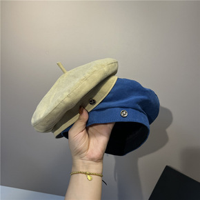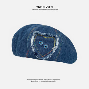 牛仔甜酷爱心纽扣贝雷帽女春秋洋气百搭显脸小水洗云朵...