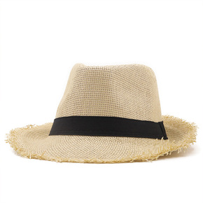 韩版百搭英伦毛边帽子女夏天草帽沙滩度假爵士礼帽遮阳...