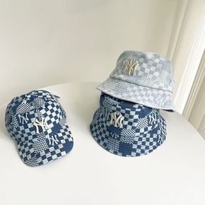 春夏字母刺绣渔夫帽韩国时尚百搭棋盘格盆帽男女户外防...