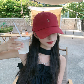 刺绣小R标棒球帽女韩版百搭弯檐复古鸭舌帽男春夏款显...