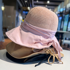 草帽女小清新日系百搭蕾丝绑带蝴蝶结帽子女夏出游大檐...