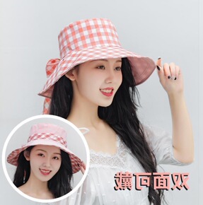 2021春天网红格子大帽檐遮阳遮脸太阳帽春夏韩版渔...