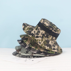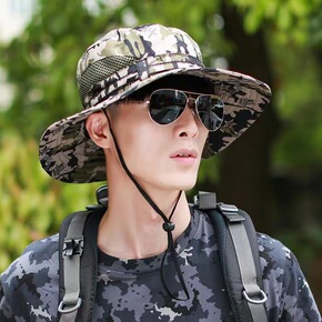 迷彩渔夫遮阳帽男女士春夏防晒透气大檐帽太阳帽户外钓...