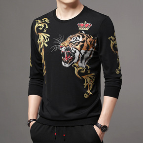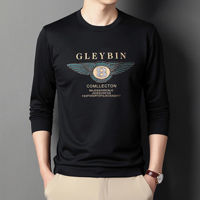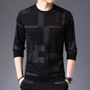 2022年春秋季德绒休闲长袖T恤印花圆领卫衣男士中...