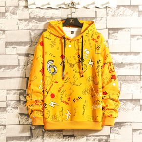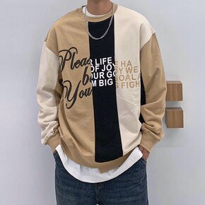 春季新款拼接字母套头卫衣男街头潮流简约印花上衣打底...
