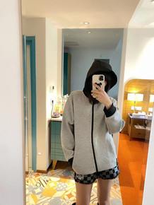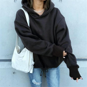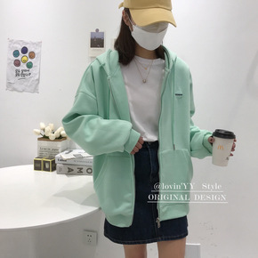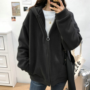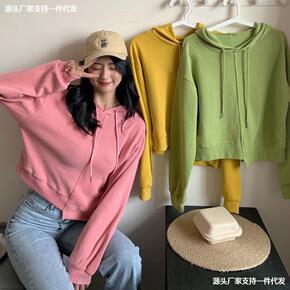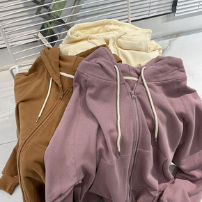 2022春季新品简约纯色宽松连帽卫衣外套女韩版慵懒...