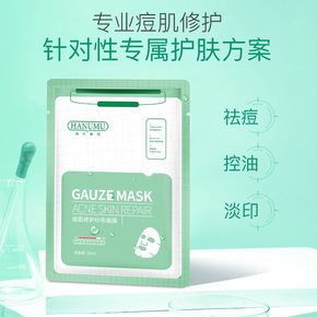 韩伦美羽痘肌修护纱布面膜 淡化痘印祛痘精华液护肤品...
