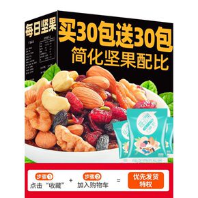 网红每日坚果混合坚果孕妇儿童成人款干果类30包礼盒...