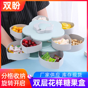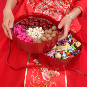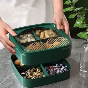 双层分格干果盘 糖果盒客厅带盖塑料家用大号瓜子盒子...