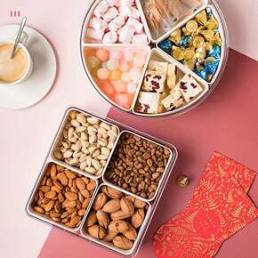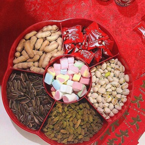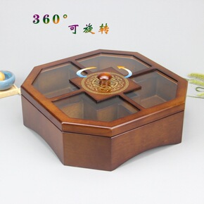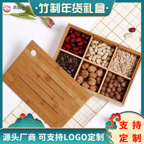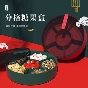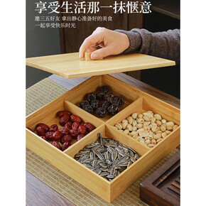 竹制新年糖果盒多功能过年干果盒分格带盖实木水果盘 ...
