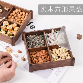 木质家用干果盘分格带盖实木创意糖果盒零食糖果盘客厅...