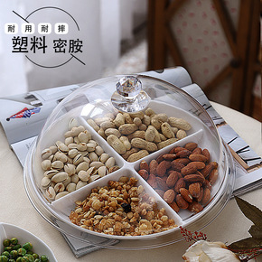 客厅式创意双层干果盘家用零食盘分格带盖密封试吃盒瓜...