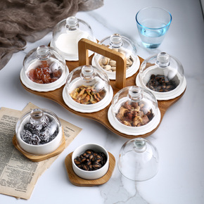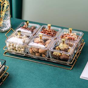 家用轻奢果盘零食盘客厅分格干果盘点心玻璃碟糖果收纳...