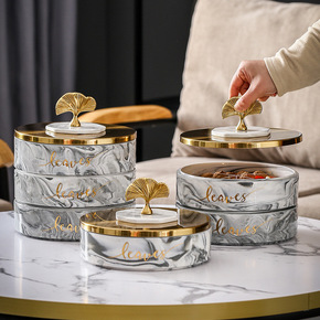 迈卡伦 陶瓷 新年轻奢干果盘分格客厅家用糖果零食收...
