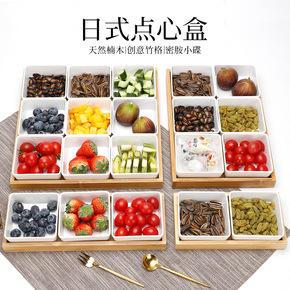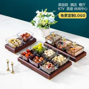 木制零食坚果盒创意分格带盖干果盘客厅家用北欧风格糖...