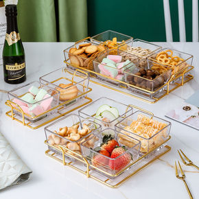 北欧ins玻璃果盘轻奢创意零食分格干果盘点心糖果盘...