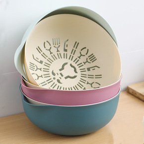 .洗菜盆沥水篮家用双层镂空水果盆厨房塑料洗菜篮收纳...