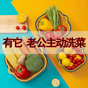 双层洗菜盆六件套沥水篮客厅家用塑料洗菜篓洗菜筐多功...