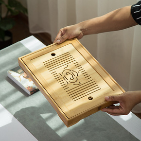 竹制茶盘家用蓄水式茶海小茶船盛水茶台小型干泡盘储水...