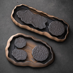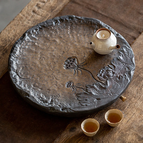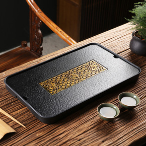 复古鎏金干泡盘 粗陶家用小茶台 储水式茶盘 禅意干...