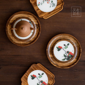 祥云竹制实木壶承 紫砂壶垫养壶茶壶垫茶盘干泡台 日...