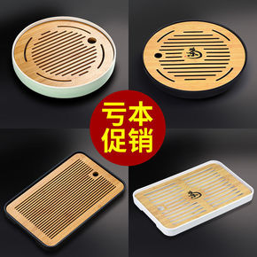 陶瓷简约现代功夫茶具家用茶盘圆形大小号迷你创意竹制...