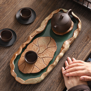 粗陶干泡台茶盘禅意储水小型两人用简易茶海陶瓷日式茶...