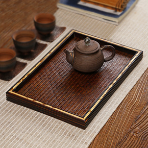 复古席面干泡台小茶盘 竹制奉茶盘茶托盘垫 家用日式...