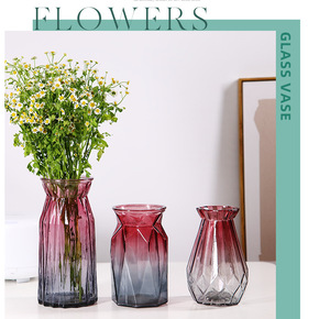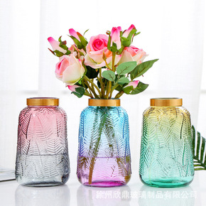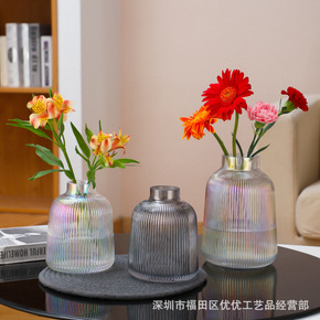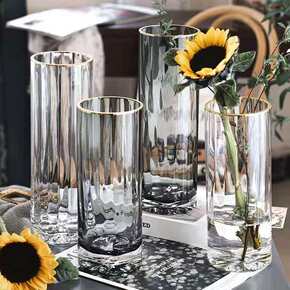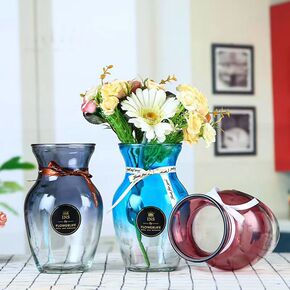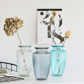 欧式玻璃花瓶圆口彩色鲜花水培透明干花家居客厅创意工...