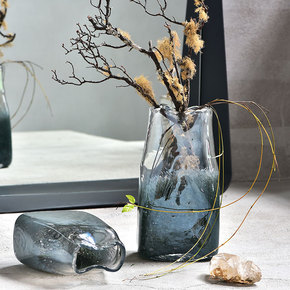 北欧复古玻璃花瓶现代简约家居客厅样板间插干花花器装...