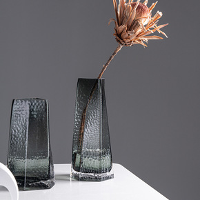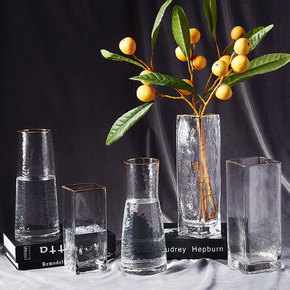 轻奢家饰北欧花瓶玻璃透明创意摆件三角口锤纹目客厅干...