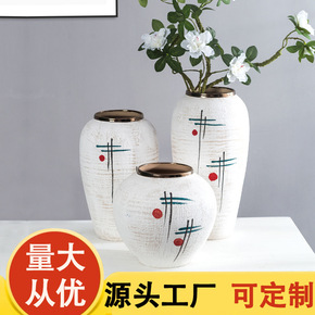 小花瓶花器日式插花中式禅意桌面摆件粗陶迷你器皿插花...