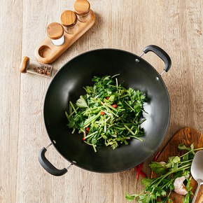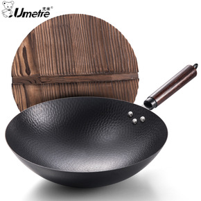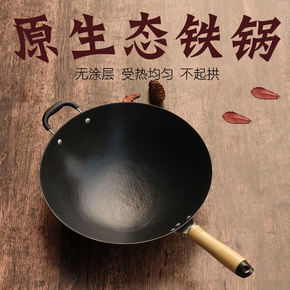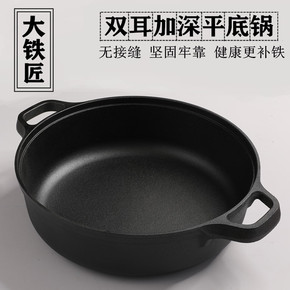 老式生铁锅炒锅无涂层平底锅不粘锅农村家用电磁炉煤气...