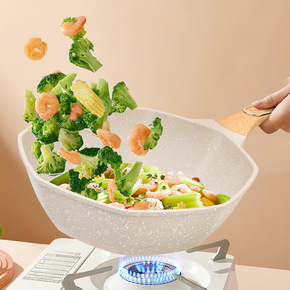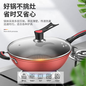 麦饭石炒锅不粘锅平底家用炒菜锅小型粉色单人煤燃气灶...